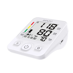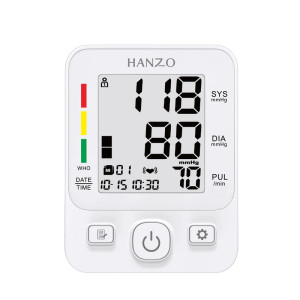 فشارسنج بازویی دیجیتال سخنگو برند هانزو مدل 806، با قابلیت تشخیص آریتمی، ذخیره سازی نتایج برای 2 نفر، خاموشی خودکار، اعلان به زبان فارسی، کاربرد خانگی و نیمه حرفهای، دارای نمایشگر LED