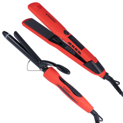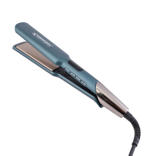 ناموجوداتو مو کنورث مدل kw-3083، با صفحات پهن از جنس سرامیک، دارای نشانگر LCD، سیستم خاموشی خودکار، شانه و 2 عدد گیره مو، گستره دما 230 تا 510 درجه سانتیگراد، به همراه سیم 2 متری