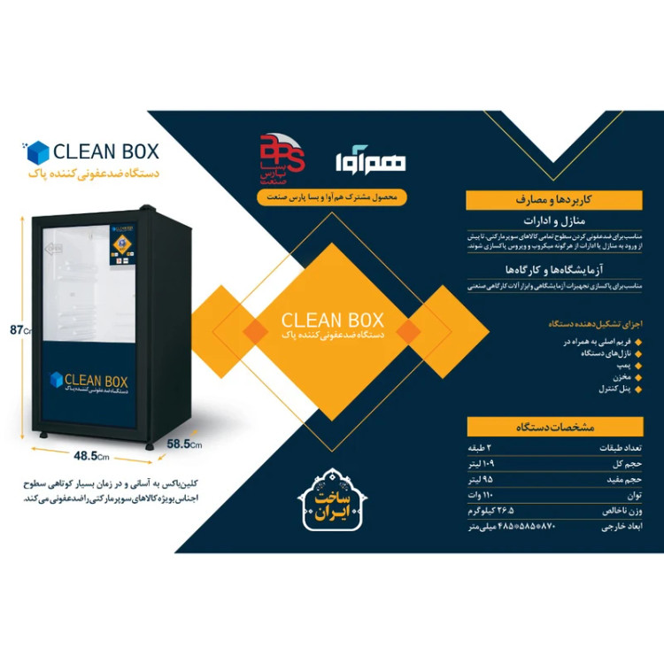 دستگاه ضدعفونی کننده پاک کد 121 دستگاهی است که میتوان در هرجا و مکانی از آن بهره برد و استفادههای مفیدی کرد. بهجای اسپری دستی ماده ضدعفونی کننده روی تکتک کالاها، میتوان بعد از انتخاب وضعیت پیش پاشش از روی پنل و حصول اطمینان از ضدعفونی شدن داخل دستگاه، همه یا بخشی از اقلام خریداری شده را در داخل دستگاه قرار داد و با انتخاب یکی از حالتهای پاشش دستی، پاشش متوسط یا زیاد، که امکان کنترل زمان و حجم استفاده از ماده ضدعفونی کننده را فراهم میکند، نهایتا بعد از 5 ثانیه، سطوح را کاملا به ضدعفونی کننده آغشته و بعد از 30 ثانیه مکث، آنها را از دستگاه خارج و با یک پارچه یا حوله معمولی خشک کرده و با اطمینان خاطر از لوازم و کالاها استفاده کرد. در دستگاه لامپی تعبیه شده که هنگام باز کردن در انجام فرایند روشن بوده و چنانچه در دستگاه باز باشد صدای هشدار به گوش شما میرسد.