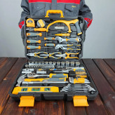 مجموعه فوق ساخت کارخانه مشهور های اسپک می باشد که دارای بهترین کیفیت از فولاد سخت کاری شده است و مناسب امور سنگین، نیمه سنگین، حرفه ای و خانگی می باشد. در داخل این مجموعه دو عدد پیچ گوشتی 6x125 دو سو و چهار سو و دو عدد پیچگوشتی 3x100 دو سو و چهار سو می باشد. یک عدد دسته بکس کشویی و دو عدد جغجغه 1/2 و 1/4 اینچ دارد که تمامی بکس ها روی آن سوار میشوند. همچنین یک عدد کمکی بیت و دو عدد کمکی بکس دارد. یک عدد متر 3 متری، یک عدد دم باریک، یک عدد انبر کلاغی حرفه ای، یک عدد قیچی و یک عدد انبردست بسیار با کیفیت می باشد. دارای 14 عدد بکس فولادی 1/4 اینچ از سایز 4 الی 14 میلیمتر و 13 عدد بکس 1/2 اینچ از سایز 10 الی 27 میلیمتر دارد، یک عدد چکش دو شاخ 250 گرمی، یک عدد آچار فرانسه 8 اینچ، یک عدد فازمتر دیجیتالی، 32 عدد نوک پیچگوشتی و 12عدد نوک پیچگوشتی موبایلی و ساعتی، و یک عدد تراز می باشد. 6 عدد آچار دو سر تخت از سایز 6 الی 17 دارد. 9 عدد الن از سایز 1.5 الی 12 میلیمتر دارد.تمامی این ابزارها در داخل کیفی نشکن و بسیار با کیفیت قرار دارد.