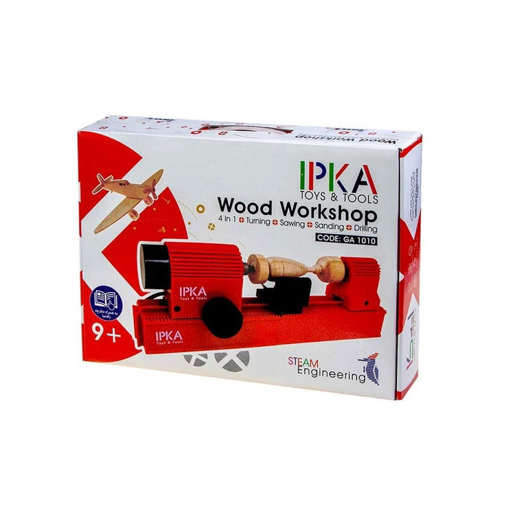 کارگاه نجاری یا دستگاه کار و اندیشه ایپکا، یک دستگاه درودگری یا همون نجاری سبک، قابل حمل و 4 کاره است. بله درست متوجه شدید این محصول طوری طراحی شده است تا قابلیت تبدیل به چهار حالت اره کاری، سوراخ کاری، سنبادهزنی و خراطی را برای فرزند شما مهیا کند تا آنها بتوانند هر نوع اجسام سه بعدی را بسازند. از مزایای این محصول، طراحی بدون خطر تیغه اره دستگاه نجاری است که به دست کودک شما آسیبی وارد نخواهد کرد. همچنین این دستگاه تمامی قابلیتهای اصلی دستگاههای بزرگ درودگری را داراست که ضمن آشنایی فرزند شما با این نوع دستگاهها، امکان ساخت بسیاری از مدلهای چوبی را برای نجاران کوچک ایپکا مهیا میسازد. این دستگاه قابل حمل، 4 کاره است و طوری طراحی شده که قابلیت تبدیل به چهار حالت اره کاری، سوراخ کاری، سنبادهزنی و خراطی را داراست. شما میتوانید با این دستگاه کاردستیهای سه بعدی چوبی بسازید و نیز جهت معرق کاری از آن بهره ببرید.
