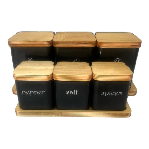 بانکه درب چوبی مدل لوکس مجموعه 6 عددی شامل 3 ظرف پلاستیکی با درب چوبی به ابعاد 9x9 به ارتفاع 10 سانت که روی یک سینی چوبی به ابعاد 10.5x28.5 سانت قرار دارند و 3 ظرف دیگر به ابعاد 11.5x11.5 به ارتفاع 14 سانت که روی یک سینی چوبی به ابعاد 37.5x13.5 قرار دارند می باشد. که بسیار شیک بوده و قابلیت شستشو با آب را دارا می باشد.