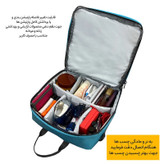 توضیحات جیب: دارای یک جیب بزرگ همراه با پارتیشن بندی قابل تنظیم و قابل جدا شدن جهت نظم دهی بهتر به لوازم آرایشی و بهداشتی زنانه و مردانه دارای یک جیب زیپی در قسمت جلویی کیف دارای دو جیب توری زیپی در قسمت داخلی دارای دو جیب تلقی زیپی در قسمت داخلی کیف