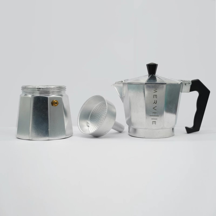 موکاپات مرویل یک قهوه جوش دستی 6 کاپ است که می توان در آن 6 فنجان قهوه اسپرسو را در کمترین زمان ممکن دم آوری کرده و با کمک آن تنها در عرض چند دقیقه یک قهوه اسپرسو غنی و عالی را نوش جان کرد. این قهوهساز با گذراندن آب بسیار داغ و تحت فشار با بخار از میان قهوه آسیاب شده، اسپرسو تولید مینماید بدنه این قهوه جوش از جنس آلمینیوم تولید شده و دسته و دستگیره درب آن از پلاستیک فشرده ساخته شده است. روش استفاده: قهوه را به اندازه مناسب آسیاب کنید (به ازای هر فنجان تقریبا 7 الی 9 گرم قهوه) مخزن موکاپات را تا زیر سوپاپ با آب جوش پر کنید قیف را کامل با قهوه آسیاب شده پر کنید و با کمک تمپر مقداری روی قهوه را صاف کنید (خیلی فشرده نشود) و روی مخزن بگذارید قسمت بالایی موکاپات را روی مخزن پیچ کنید تا محکم بسته شود سپس روی حرارت ملایم قرار دهید به محض اینکه عصارهی قهوه در مخزن بالایی پر شد موکاپات را از روی حرارت بردارید تا قهوه حرارت اضافی دریافت نکند و طعم سوختگی به خود نگیرد. نکات مهم: قبل از اولین استفاده قسمتهای موکاپات مرویل را جدا کنید و با آب گرم و دست بشورید بهتر است اولین قهوهای که آماده میشود را دور بریزید اگر درجه آسیاب درشت یا خیلی ریز باشد نتیجه خوبی نخواهید گرفت هرگز موکاپات مرویل را بدون اینکه آب داخل مخزن پایینی باشد روی حرارت قرار ندهید به هیچ وجه از مواد دیگری مانند چای، پودر شکلات و غیره به جای قهوه استفاده نکنید. نحوه شست و شو: قسمتهای اصلی را باز کنید و با آب گرم و یک تکه ابر آن را شستوشو دهید قبل از خشک شدن کامل قسمتهای موکاپات آنها را سر هم نکنید