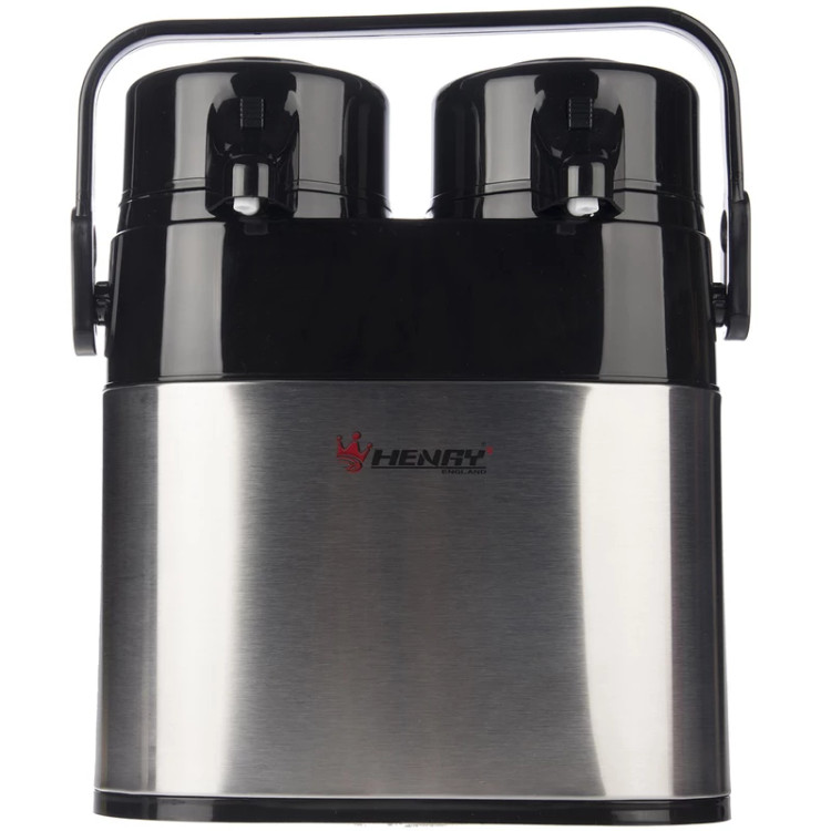 فلاسک دوقلو Henry سری Adriana ظرفیت 2 لیتر با ظرفیتی زیاد و طراحی بسیار مناسب به کسانی که قصد استفاده از آن را دارند، این امکان را میدهد تا به کمک آن از راحتی بیشتری در زمان مسافرت یا کمپ برخوردار شوند. این فلاسک دارای دو محفظه جداگانه برای نگهداری مایعات گرم و سرد است به طوری که هر محفظه ظرفیتی برابر با یک لیتر دارد. عایق این فلاسک از جنس شیشه است که دمای مایعات را به صورت سرد و گرم میتواند در مدت زمانی زیاد به خوبی حفظ کند. همچنین استفاده از شیشه به عنوان عایق در این فلاسک این مزیت را نیز بدان اضافه کرده است که در صورت قرار دادن مایعاتی نظیر چای داخل فلاسک، رنگ آنها تغییر نکرده تا شما از نوشیدن چای داغ و خوش رنگ لذت ببرید. این فلاسک همچنین از طرح و رنگی بسیار زیبا بهره میبرد و استفاده از استیل بسیار مرغوب در رویه این فاسک به شما کمک خواهد کرد تا در مدت زمانی زیاد و به راحتی از آن استفاده کنید. فلاسک سری Adriana با ابعاد و وزنی مناسب، به شما این امکان را میدهد تا راحتی بیشتری در حمل آن در زمان مسافرت و یا کمپ داشته باشید. شما میتوانید با قفل کردن خروجی آب در این فلاسک از احتمال نشتی مایعات داخل به بیرون جلوگیری کنید. فلاسک دوقلو Henry سری Adriana ظرفیت 2 لیتر با گنجایشی زیاد و طراحی بسیار مناسب برای استفاده راحتتر، میتواند انتخابی بسیار مناسب برای شما باشد تا به کمک آن از راحتی بیشتری در زمان مسافرت بهرهمند شوید.