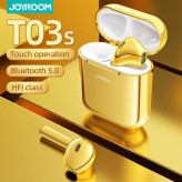 هندزفری بلوتوث جویروم JRT03S ، یک ایرفون کاملا بی سیم است که از دو ایرپاد کاملا مجزا ساخته شده است. هدست JR-T03S یکی از بهترین هندزفری بلوتوث جویروم برای گوشی موبایل است. با تکنولوژی های پیشرفته جادویی، وضوح و عمق موسیقی با کیفیتی را تولید می کند. بدون شک ظاهر خاص این محصول شما را به یاد ایرپاد اپل می اندازد. شما می توانید از این هندزفری با گوشی آیفون، اندروید و هر دستگاه های بلوتوث داری استفاده کنید و فقط چند ثانیه برای اتصال آن زمان می برد. طراحی کاملا بی سیم حذف همه سیم های مزاحم در اطراف گردن شما جزو مزایای طراحی ایرفون جویروم محسوب می شود. ایرفون های فوق العاده کوچک و با وزن کم هستند و به خوبی درون گوش کاربر قرار گرفته و هنگام استفاده طولانی مدت احساس خستگی و یا سنگینی نخواهد کرد. نحوه اتصال هدست هندزفری وایرلس جویرم توسط بلوتوث نسخه 5.0 به گوشی شما متصل می شود و ارتباط بی سیم تا برد 10 متر را فراهم می کند. این نسخه از بلوتوث ارتباط با ثبات تر و بدون قطعی را فراهم می کند که مصرف انرژی آن نیز پایین است. بعد از اینکه یکبار هدست را به گوشی متصل کنید، برای استفاده در دفعات بعد، هنگامی که هدست را از دورن کیس شارژ بیرون بیاورید به صورت خودکار به گوشی وصل می شود. همچنین پنجره ای روی گوشی شما باز خواهد شد و میزان باتری باقی مانده کیس شارژ و ایرپادها را نشان می دهد.هندزفری Joyroom مدل JR-T03S Gold دارای دو گوشی با طرح ایرپاد همراه با یک داک شارژ است. باتری کیس 400 میلی آمپر بوده و می تواند تا سه بار گوشی ها را شارژ کند و تا 3 ساعت مداوم در حالت صدای 50 درصد شما را همراهی کند. بلوتوث به کار رفته در این محصول ورژن 5 بوده و به همین جهت اتصال آن با سرعت بالا و پایدار انجام میشود. برای شارژ هندزفری Joyroom T03S نیز علاوه بر پورت لایتنینگی که در قسمت پایین کیس قرار داده شده، می توانید از طریق شارژرهای وایرلس ایرپاد خود را شارژ کنید.