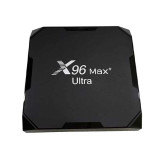 اندروید باکس X96 مدل Max plus ultra محصول سال 2021 می باشد که با ظاهری بسیار زیبا طراحی شده است. یکی از برجسته ترین ویژگی های این تی وی باکس، پردازشگر مرکزی (CPU) قوی Amlogic S905X4 بوده که از فرمت ویدئویی 8k@24fps,4K@60fps پشتیبانی می کند. از دیگر ویژگی های این محصول سیستم عامل اندروید 11، پردازنده گرافیکی Mali G31 MP2، حافظه ی سیستمی با ظرفیت 4 گیگابایتی و حافظه ی ذخیره سازی 32 گیگابایت، بلوتوث ورژن 4.1 با سرعت بیشتر در انتقال داده، مصرف کمتر انرژی و پایداری بهتر، WIFI Dual Band ac 2.4/5.8GHZ 2T2R MIMO در راستای امکان جستجو و نمایش آنلاین بسیاری از ارائه کنندگان سرویس های تلویزیون اینترنتی با سرعت بالاتر و پایداری بیشتر در انتقال داده ها و دانلود، پوشش دهی گسترده تر محیطی، به حداقل رساندن تداخل فرکانسی و همچنین امکان پخش روان تر محتوای تصویری، پورت HDMI2.1 و USB3.0 را می توان نام برد. ناگفته نماند که این اسمارت باکس انتخاب مناسبی برای مقاصد Gaming نیز می باشد. به کار گیری dlna, AirPlay و Miracast در اندروید باکس X96 Max Plus Ultra صفحه نمایش بزرگ تلویزیون را جایگزین صفحه نمایش گوشی موبایل می کند و مدیای موجود در گوشی موبایل به صورت بی سیم بر روی تلویزیون نمایش داده می شود. کافی است گوشی موبایل و اندروید باکس هر دو به یک شبکه وایرلس مشترک متصل باشند. استفاده از این قابلیت به اینترنت نیازی ندارد و حجم سرویس اینترنتی را مصرف نمی کند. درگاه USB 3.0 بر روی این اندروید باکس سرعتی در حدود 10 برابر بیش از USB 2.0 در انتقال اطلاعات برای کاربر فراهم می کند. X96 Max Plus Ultra داری ورودی وخروحی های کامل و متنوع برای هرگونه استفاده میباشد. از جمله خروجی AV برای اتصال به تلویزیون های فاقد HDMI و پورت اپتیکال جهت استفاده از سینمای خانگی میباشد.