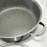 قابلمه های ظرفیران رهنمون مدل کرال ساخته شده از متریال کششی ضخیم با ضخامت 2.5 میلی متر علاوه بر دوام بالا دارای قابلیت حفظ دما و مقاوم در برابر حرارت بالاست.پوشش بیرونی قابلمه ها از رنگ سیلیکون پودری بوده که بر اثر پخت الکترواستاتیک در برابر دمای بالا مقاوم و نسوز است.پوشش داخلی قابلمه های ظرفیران رهنمون از بایو گرانیت طبیعی و گیاهی بوده و فاقد مواد مضر PFOA میباشد.سه لایه استند-آستر و رویه پوششی با مقاومت بالا بوجود آورده تا به هنگام پخت و پز غذا به هیچ عنوان به کف ظرف نچسبدودسته ها از جنس استیل مفتولی که روی قابلمه پرچ شده اند هرگز جدا یا لق نمیشوند و هنگام اشپزی بوی بد یا خطر سوختن ندارد.
