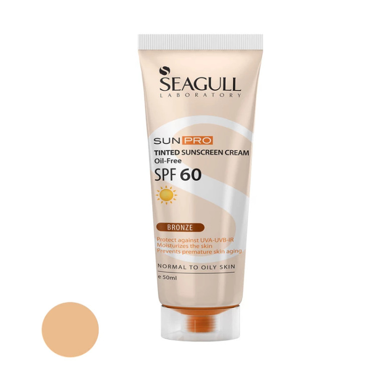 کرم ضدآفتاب رنگی سی گل، با SPF60، مدل Sunpro، حاوی محافظ UVA ،UVB، فاقد چربی، مناسب پوست چرب تا معمولی، حجم 50 میلیلیتر