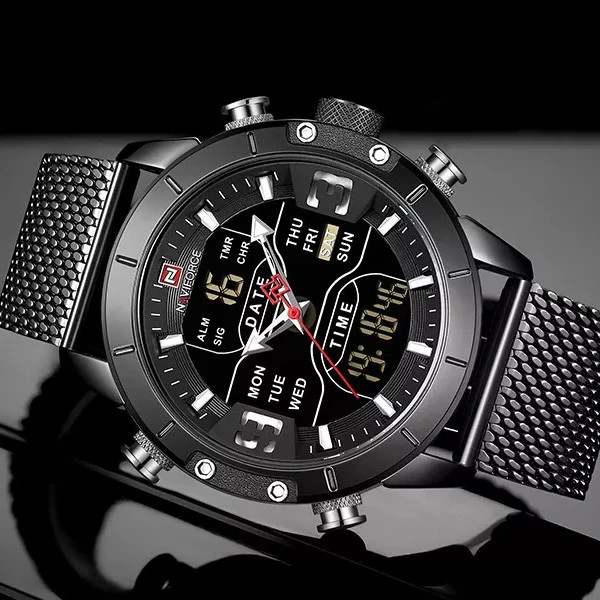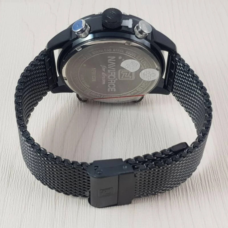 ساعت مچی مردانه نیوی فورس NAVIFORCE مدل NF9153L می باشد. کسانی که ساعت مچی اورجینال با قیمت مناسب و با دوام و کیفیت بالا می خواهند NAVIFORCE یک انتخاب عالی محسوب می شود. این ساعت با طراحی کلاسیک ، بند استیل حصیری میباشد. ساعت های نیوی فورس محصول اورجینال هستند که موتور کوارتز ساخت ژاپن با کیفیت عالی دارند. دارای نشانگر تاریخ,بند استیل,ضد حساسیت و رنگ ثابت با شیشه معدنی مقاوم در برابر خش که در این چند سال خیلی توانسته در دل مردم جا باز کند. ساعت های نیوی فورس ظاهر جذاب و اسپرتی دارند.