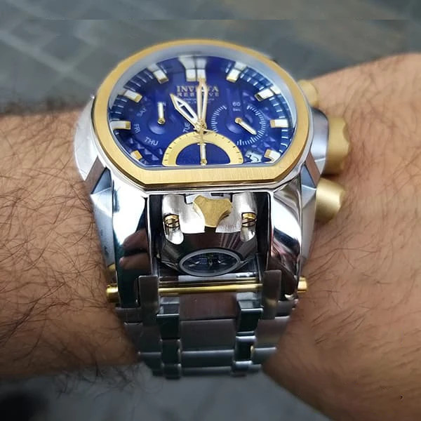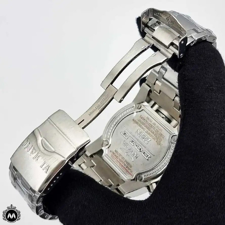 شاهکار غول پیکر دیگری از برند مطرح آمریکایی، Invicta Watch اورجینال. شاهکاری که اگر اهل ساعت هم نباشید، تا حالا ساعت هم نینداخته باشید و یا حتی اگر از ساعت مچی هم خوشتان نیاید، با دیدنش وسوسه خواهید شد. همان ساعتی است که شاید شما را مدهوش کند! فقط نگاهی به ابهت این ساعت مچی بیاندازید و روزی را در ذهنتان ببینید که یکی ازین ساعت ها را در دستتان دارید! مطمئنا خیره کننده خواهد بود! قاب براق به همراه بند و قفل استیل ضد خش آن هر کسی را مجذوب خودش می کند. مسلما یکی از نقاط قوت ساعت مچی Invicta صفحه بزرگ 40 میلی متری آن است. به این نقاط قوت داشتن موتوراصلی میوتا ژاپن و کرونوگراف قوی اضافه کنید. ساعتی که اگر مراقبش باشید حالا حالاها برایتان کار خواهد کرد. رنگ ثابت هست و بدنه و شیشه استفاده شده در این نوع ساعت مچی ضدخش است. همچنین دارای تقویم است که شما را از نگاه کردن به صفحه گوشی تان برای چک کردن دائم ساعت و تقویم بی نیاز می کند. تفاوت این مدل اینویکتا با مدلهای مشابه در بازار کیفیت فوق العاده بالا ی موتور و کرنوگراف قوی است داشتن یک ساعت دیگر در زیر ساعت وحک نام برند اینویکتا روی قفل ساعت از جذابیتای آن هست