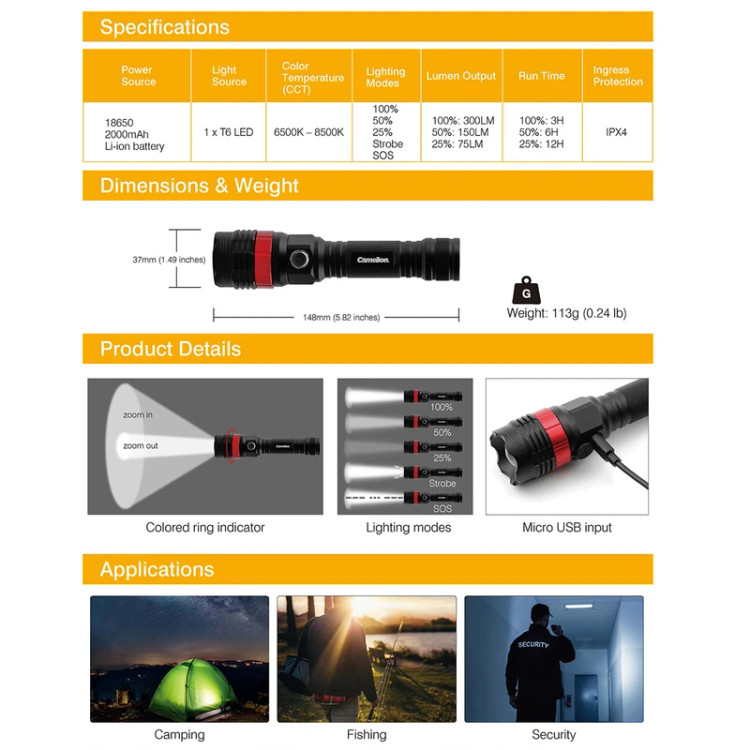 چراغ قوه کملیون مدل RT395