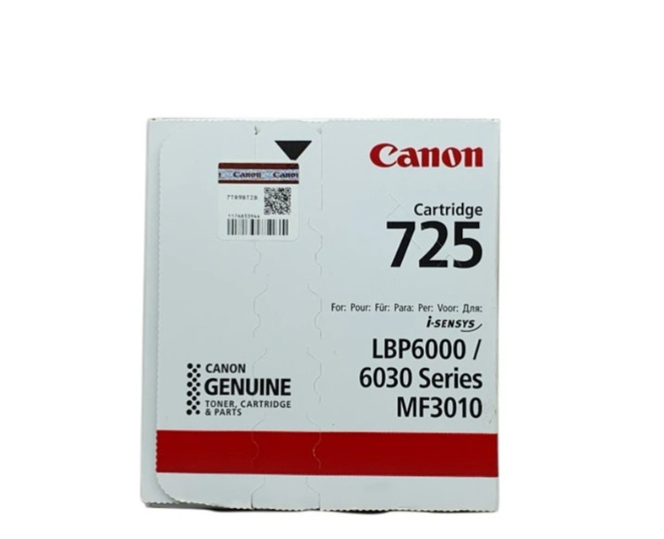 کارتریج کانن مدل 725 که یکی از جمله مناسب ترین کارتریج های لیزری موجود در بازار می باشد. از ویژگی های این محصول قابلیت آن برای استفاده در دستگاه های چاپگر سیاه و سفید (Monochrome) میباشد.محصول فوق کالای نو وارداتی است با کیفیت بسیار بالا که بدلیل نو بودن امکان شارژ به دفعات را دارد .با ظرفیت چاپ 1600 برگ با پوشش 5% روی سطح کاغذ سازگار با دستگاه های کانن مدل LBP6000 - LBP6000B - MF3010 - LBP6020 - LBP6030 - LBP6030B - LBP6030W میباشد.