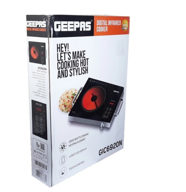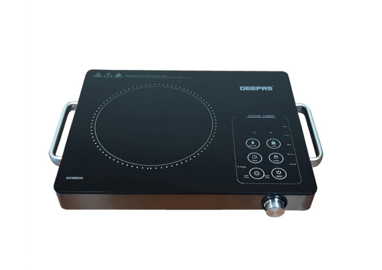 شرکت جی پاس GEEPAS با عرضه بیش از 1500 کالا در زمینه لوازم برقی و خانگی و ... بیش از 37 سال است که در آسیا و اروپا فعالیت مستمر دارد.اجاق گاز مادون قرمز ( Infrared) یا بعبارتی اجاق برقی القایی مدل GIC6920N با دارا بودن صفحه شیشه ای مشکی یک دست بسیار مقاوم به حرارت بطور یکدست در بالای اجاق ، تنها حرارت را در محدوده دایروی که با خط چین نیز مشخص شده است ایجاد می کند و در بقیه مناطق صفحه دما کاملا با دمای محیط یکسان است .می توان هر گونه ظرفی را برروی دستگاه قرار داده و دمای حرارت ساطع شده را از 60 درجه تا 2000 درجه سانتیگراد تنظیم کرد . اجاق دارای صفحه نمایش سون سگمنت با 4 رقم می باشد که می توان دما و زمان تنظیم شده تایمر و ولتاژ برق را نیز مشاهده کرد. گرمای ساطع شده را می توان در دو حالت حلقوی و یا مرکزی و نیز ترکیب این دو با هم ایجاد کرد.دستگاه دارای قفل می باشد که با نگه داشتن بمدت 5 ثانیه فعال و نیز به همین صورت غیر فعال می شود . کل عملیات کنترل بطور کامل لمسی است . توان حرارتی دستگاه 2000 وات می باشد دستگاه از تایمر 3 ساعته برخوردار می باشد .با روشن شدن دستگاه فن آن به کار می افتد و بعد از خاموش کردن دستگاه نیز تا هنگام خنک شدن کامل دستگاه جهت جلوگیری از آسیب رسیدن به دستگاه و یا کاربر ، فن کار می کند و بطور خودکار خاموش می شود پس دستگاه را تا هنگام خاموش نشدن فن از برق نباید خارج کرد .دستگاه دارای 3 شاخه خارجی مجهز به فیوز داخلی جهت حفاظت از شبکه برق خانگی و خود دستگاه برخوردار است.