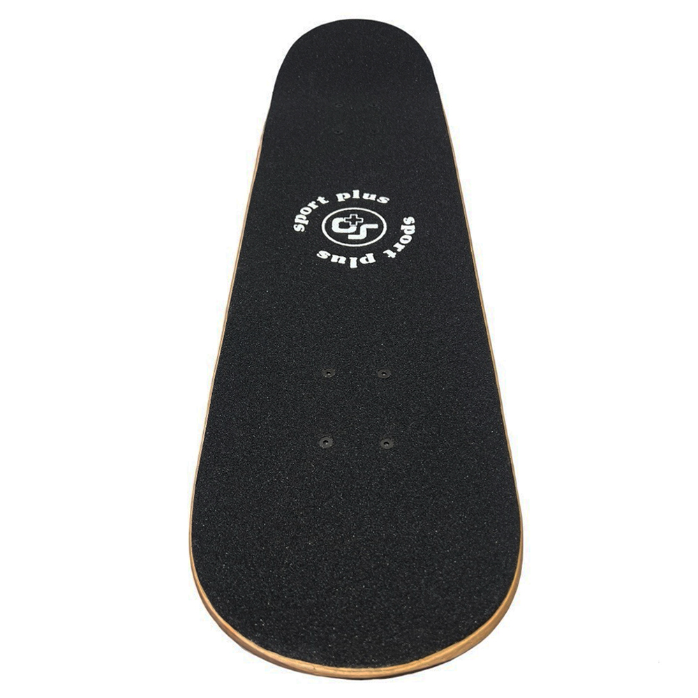 اسکیت برد SPORT PLUS دارای چرخ های 54 میلی متری و عرض دک 8 اینچ می باشد و تا وزن حدود 80 کیلوگرم را تحمل می نماید. همچنین چرخ های این اسکیت برد دارای جنس پلی اورتان با خاصیت جذب شوک است. جنس تخته اسکیت چوب افرا هفت لایه چینی میباشد. جنس ترک چرخ ها آلومینیوم نشکن است.کفی تخته حالت سمباده ای قوی دارد که باعث اتصال بهتر مابین راکب و اسکیت بورد میشود.