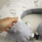 بالش تامی پیلو از برند دی روحه DieRuhe یک بالش چند منظوره است. این بالش به عنوان بالش شیردهی به راحتی با بند به کمر مادر بسته می شود و مادر و نوزاد را در وضعیت ارگونومیک قرار می دهد تا شیر دادن را راحت تر کند و از کمردرد و آسیب های گردن و شانه جلوگیری کند. هم چنین در این حالت می توانید از جیب های این بالش برای قرار دادن پد شیردهی یا وسایل دیگر استفاده کنید. کاربرد دیگر این بالش به عنوان بالش تامی تایم است. برای زمانی که لازم است نوزاد به شکم دراز بکشد. در این حالت می توانید به دو حلقه ای که در بالش وجود دارد دندان گیر یا اسباب بازی های مورد علاقه فرزندتان را آویزان کنید تا کودک از این وضعیت خوابیدن لذت بیشتری ببرد. کاربرد دیگر این بالش برای آموزش نشستن وبه عنوان نشیمن کودک است تا کودک در محیطی ایمن و نرم باشد و نگرانی از افتادن کودک به طرفین وجود نداشته باشد. در این حالت بهتر است با وارو کردن جیب ها بند را درون جیب های دو طرف بالش پنهان کنید تا از دسترس کودک خارج شوند. روکش این بالش از پارچه صد در صد پنبه ای تهیه شده، زیپ دارد و قابل جدا شدن و شستشو می باشد.