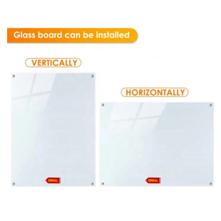 گلس برد های شیشه ای (وایت برد های شیشه ای) دینیال به همراه یک برگه ی حاوی الگو و دستورالعمل نصب به دست شما میرسد و به آسانی به شما نشان میدهد که چطور با پیچ، رولپلاک و فیکسچر استیل موجود در بسته ، شیشه را روی دیوار منزل، محیط کار، آشپزخانه و محیط های اموزشی نصب کنید. گلس برد ها از شیشه ی سوپر کلیر سند بلاس شده 6 میلی متری ساخته شده و به همراه 4 عدد پیچ، 4 عدد رولپلاک، 4 عدد فیکسچر استیل جهت نصب روی دیوار و پایه فلزی مخصوص جهت قرار دادن ماژیک و تخته پاک کن و 2 عدد گیره ی فلزی رنگی همراه با ماژیک و تخته پاک کن به دست شما میرسد تا نصب و استفاده از آن را برای شما دلپذیر تر و آسانتر کند. دو گیره ی فلزی رنگی این امکان را به شما میدهد که به راحتی برگه های خود را به شیشه وصل کرده و به راحتی جدا کنین. به دلیل وجود سطحی صاف و صیقلی شیشه به راحتی می توانید با استفاده از ماژیک و پاکن تخته وایت برد بر روی آن بنویسید و پاک کنید و هیچ گرتی از ماژیک خود بعد از پاک کردن آن روی شیشه به جای نگذارید. زیبایی و عمر بیشتر از دیگر مزیت های این تخته های شیشه ای میباشد. گروه دینیال با دیزاین مدرن، بسته بندی مناسب، آموزش نصب و ارسال تجهیزات مورد نیاز سعی دارد تجربه ای متفاوت از خرید را به مشتریان خود ارائه دهد و به شما توصیه میکند که برنامه ی روزانه ی خود را روی تخته ها بنویسید و مطمئن باشید که دیگر چیزی را از قلم نخواهید انداخت.