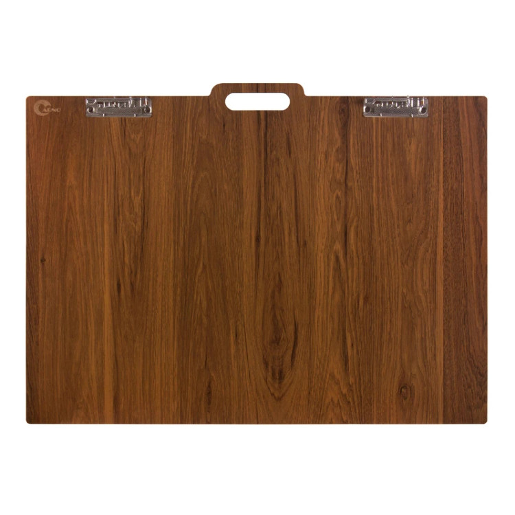 تخته شاسی کارنو از ام دی اف مرغوب 3 میلی متر و به صورت دو رو ساخته شده است. برای بهتر نگه داشتن کاغذ از دو گیره استفاده شده است که جنس گیره ها بسیار مرغوب می باشد که استفاده ی آن را برای هنرمندان و دانش جویان راحت کرده است. سایز این مدل طوری طراحی شده است که به راحتی در کیف های آرشیو جایگذاری می شود.