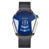 ساعت مچی پیش روی شما از برند اصیل و با کیفیت بست وین بوده که این مدل به دلیل طراحی منحصر بفرد معروف به مردآهنی یا آدم آهنی یا آیرون من شناخته شده است.رنگ بند و بدنه این ساعت ثابت بوده و بند حصیری آن نیز از نوع با کیفیت و راحت با رنگ ثابت میباشد.این ساعت به شکل کنتوری کار میکند و به این شکل که حلقه مرکزی که دائم در حال چرخش میباشد معرف ثانیه شمار ساعت میباشد و دو قسمت دیگر نیز به ترتیب از بالا به پایین دقیقه و ساعت را به شما نشان میدهند و خواندن این ساعت بسیار ساده میباشد.سر پیچ تنظیم این ساعت با لوگوی برند حکاکی شده که اصالت ساعت را یادآور میشود.موتور این ساعت ژاپنی و دارای واشر ضدآب نیز میباشد و روی صفحه ساعت به صورت آینه ای میباشد که زیبایی این ساعت را دوچندان کرده است و در زوایای مختلف در نور به دلیل طراحی خاص صفحه و قاب که دارای چندین زاویه و خم میباشد تمامی نگاه ها را به خود جلب میکند و دوستان توجه داشته باشند که نمونه هایی بی کیفیت از این مدل طراحی به بازار عرضه شده اند که کیفیت و اصالت این ساعت قابل مقایسه با آن نمونه ها نمیباشد.