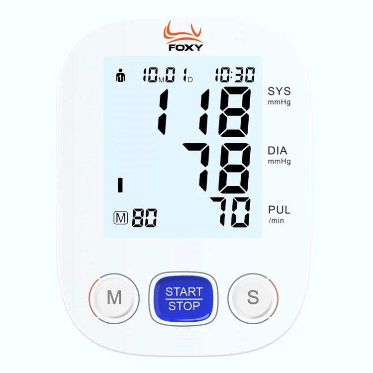 فشارسنج بازویی دیجیتال برند فوکسی مدل U80، با قابلیت تشخیص آریتمی، ذخیره نتایج 2 کاربر، خاموشی خودکار، کاربرد حرفهای، دارای نمایشگر بکلایت دار، به همراه 4 عدد باتری، کابل USB-C، کیف ضد ضربه