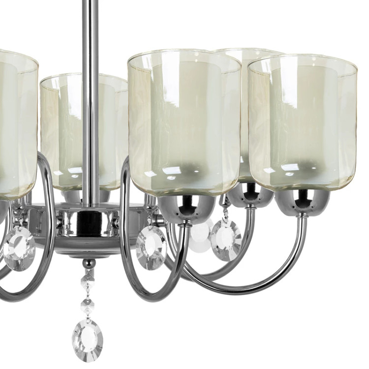لوستر زیبایی که در تصویر مشاهده میکنید توسط شرکت «چشمه نور» تولید میشود.لاله های خارجی زیبای این محصول به سمت بالا قرار دارند و با توجه به رنگ ماتی که دارند، نوری ملایم از خود ساطع میکنند. ستون و شاخههای این لوستر، فلزی بوده و به زیبایی طراحی شدهاند. یکی از نقاط قوت این لوستر آبکاری زیبا و باکیفیت آن است که دردورنگ طلایی و کروم عرضه میشود.ارتفاع لوستربرابر 70 سانتیمتر میباشد و کاربر میتواند با کم کردن زنجیرهای آن، این میزان را به 60 سانتیمتر کاهش دهد. از لوستر فوق میتوان در اتاق پذیرایی، آشپزخانه و اتاق خواب استفاده کرد. این محصول با کد« 812 » شناخته میشود. این لوستر در عین زیبایی از کیفیت ساخت بالایی برخوردار است. یکی از ویژگی های بارز این مدل این است که میتوان شاخه های آن را رو به پایین نیز بست