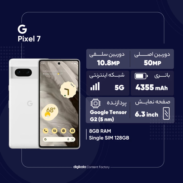 گوشی موبایل گوگل مدل Pixel 7 ظرفیت 128 گیگابایت رم 8 گیگابایت(جعبه باز)