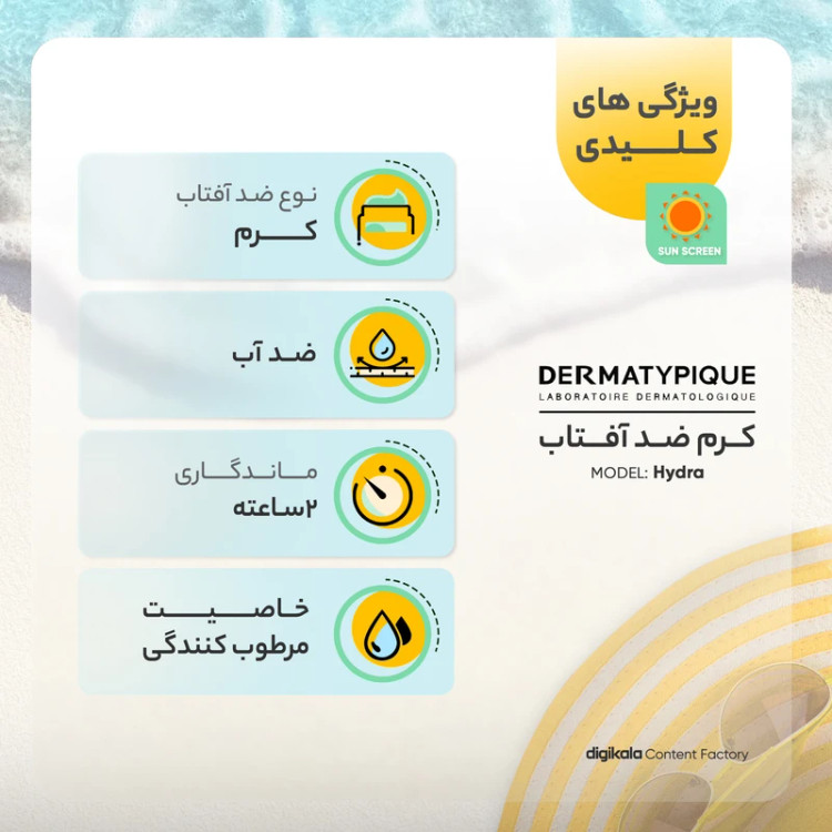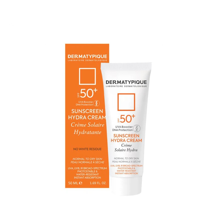 کرم ضد آفتاب بدون رنگ درماتیپیک SFP50 مدل Hydra محافظ UVA ،UVB، ضد آب، مرطوبکننده، مناسب انواع پوست حجم 50 میلیلیتر