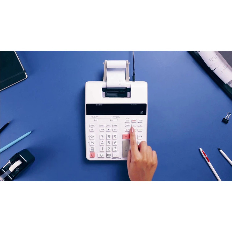 شرکت «کاسیو» (Casio) ماشینحساب «FR-2650RC» را برای انجام محاسبات و پرینت آنها به بازار عرضه کرده است. ماشینحساب FR-2650RC یکی از مدلهای قدرتمند این شرکت است که برای استفادههای فروشگاهی و تجاری بسیار مناسب است. سرعت پرینتری که در این محصول شرکت کاسیو به کار گرفته شده است میزانی برابر با 2 خط بر ثانیه را در 2 رنگ چاپ میکند. در این پرینتر رنگ مشکی برای مقادیر مثبت و رنگ قرمز برای مقادیر منفی به کار میرود. از قابلیتهای فنی این ماشینحساب میتوان به محاسبهی قیمت خرید، قیمت فروش و حاشیهی سود با در دست داشتن 2 مورد از این 3 مورد اشاره نمود. بدین معنا که اگر 2 مورد از این 3 مورد را داشته باشید میتوانید مورد سوم را محاسبه کنید. قابلیت دیگر محاسبهی خودکار قیمت با محاسبهی مالیات، قیمت بدون مالیات، تخفیف، قیمت فروش، نرخ مالیات، نرخ تخفیف و دیگر موارد اشاره کرد. قابلیت پرینتر دوباره به کاربر این امکان را میدهد که بدون نیاز به واردکردن دوباره دادهها، چندین نسخه از آنها را دوباره چاپ کند. چاپ تاریخ و زمان دیگر ویژگی این محصول است که ارزش آن را بسیار بالا برده است. ماشینحساب FR-2650RC امکان محاسبه 12 رقم را دارد که برای یک ماشینحساب تجاری میزانی بسیار مطلوب است. پنل نمایشگر این ماشینحساب از نوع FLDP است که اعداد را بهصورت کاملاً واضح و با نور زیاد نمایش میدهد و زاویه دید گسترده و کاملاً رضایت بخشی دارد. این محصول از کلید های پلاستیکی باکیفیت ساخته شده است. میزان صدای چاپ هم در این مدل از ماشینحسابهای کاسیو کمتر شده است تا استفاده از آن را در محیطهای مختلف مناسب کند. کاسیو این ماشینحساب را در رنگ سفید و با مواد اولیه باکیفیت بهعنوان ماشینحسابی فروشگاهی و تجاری روانه بازار کرده است.