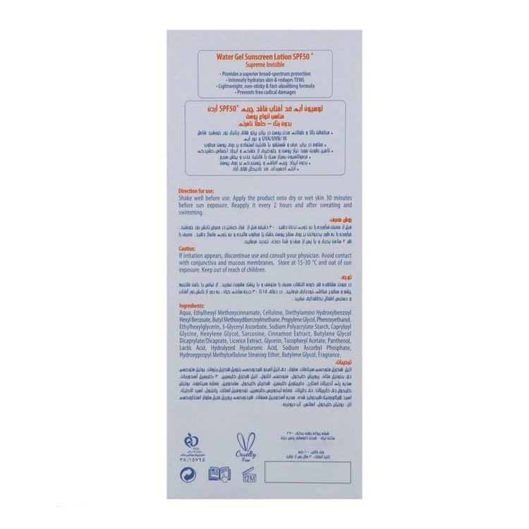 لوسیون ضدآفتاب آردن سولاریس با ویژگیهای سازگار با محیط زیست، انتخابی هوشمندانه برای کسانی است که به دنبال حفاظت کامل از پوست خود هستند، در حالی که به حیوانات و طبیعت احترام میگذارند. این محصول با فرمولاسیون بدون تست حیوانی، فاقد پارابن و سیلیکون، تعهد خود به پایداری محیط زیست را به نمایش میگذارد. با SPF 50، این لوسیون به طور موثری از پوست شما در برابر اشعههای مضر UVA و UVB محافظت میکند. با ماندگاری دو ساعته و ویژگی ضد آب، لوسیون آردن سولاریس انتخابی ایدهآل برای استفاده در شرایط مختلف آب و هوایی است. این محصول با حجم 100 میلیلیتر، مناسب برای استفاده روی صورت، گردن و بدن بوده و به دلیل بافت بدون رنگ و فاقد چربی، برای همه انواع پوست قابل استفاده است. لوسیون آردن سولاریس با ترکیباتی که فاقد مواد مضر هستند، به حفظ سلامتی و زیبایی پوست شما کمک میکند. با انتخاب لوسیون ضدآفتاب آردن سولاریس، نه تنها از پوست خود در برابر اشعههای مضر محافظت میکنید، بلکه به حفظ محیط زیست نیز کمک میکنید. همین حالا این لوسیون را امتحان کنید و از تجربهای مطمئن و سازگار با طبیعت لذت ببرید.