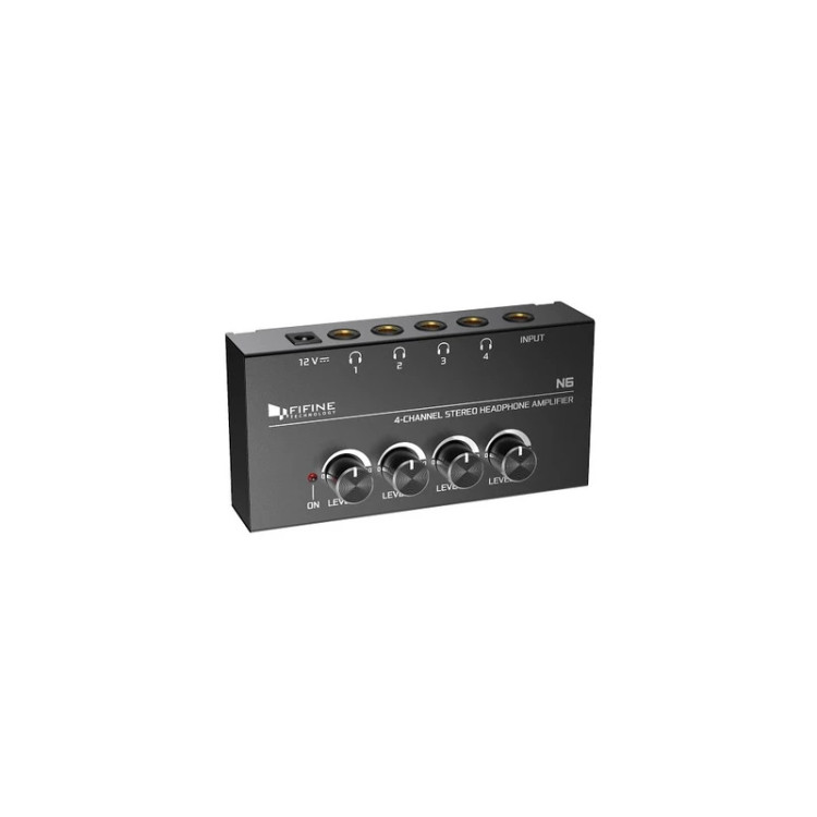 اگر به دنبال راهحل عالی و ساده برای به اشتراک گذاشتن لاین هدفون هستید N6 از کمپانی فای فاین میتواند پاسخگوی این مشکل شما باشد. شما بهراحتی میتوانید خروجی میکس مونو یا استریوی خود را به این آمپلیفایر وارد کرده و تا 4 هدفون را بهصورت همزمان برای گوش دادن به آن متصل کنید. فای فاین برای هرکدام از این لاینهای هدفون ناب تنظیم صدای جداگانه قرار داده است تا بتوانند بهدلخواه ولوم صدای هدفون را کموزیاد کنند. طراحی کوچک و جمعوجور این وسیله و سادگی کار کردن با آن استفاده از آن را در تمام محیطها و برای همهی کاربران امکانپذیر میکند. بهعلاوه قرار گرفتن تمام ورودیها و خروجیها در پشت این دستگاه ظاهر خوب این دستگاه را در زمان اتصال هدفونها حفظ میکند. استفادهی از این دستگاه مناسب زمانی است که حاضرین در استودیو نیاز داشته باشند به ضبط یا نتیجهی میکس یا مسترینگ گوش دهند. درنتیجه بجای استفاده از اسپیکرهای مانیتور که عموماً گرانقیمتتر از هدفونها هستند و ممکن است صدای خروجی از آنها با توجه به خواص آکوستیکی اتاق تغییر پیدا کند با استفاده از N6 تا چهار نفر میتوانند برای شنیدن و مانیتور کردن از هدفونهای مانیتور استفاده کنند. خرید و استفاده از این آمپلیفایر و مبدل هدفون به تمام کاربران استودیوها، خصوصاً استودیوهای خانگی که فضای آکوستیکی مناسبی ندارند توصیه میشود.