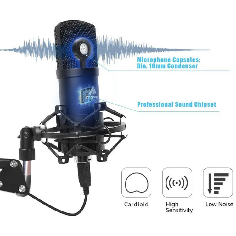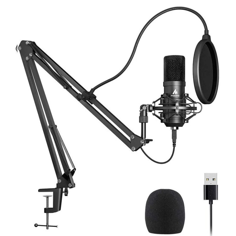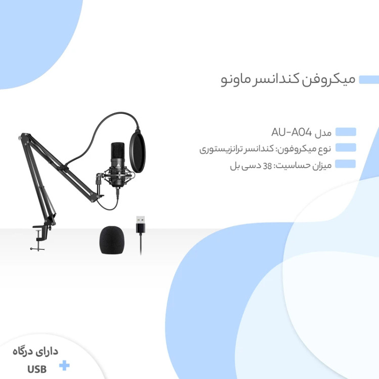ازجمله وسایل بسیار مهم در استودیوهای ضبط موسیقی یا صدا، میکروفون بسیار حرفهای و قوی است که صدای بخش شده را بدون نویز محیطی و شفاف ضبط کند. به همین خاطر توصیه میشود برای عدم دوباره کاری و ساختن یک صوت عالی از میکروفونهایی بسیار حساس به نویز و صدا استفاده کنید. میکروفن کندانسر ماونو مدل AU-A04 از محصولاتی است که از کیفیت و حساسیت بسیار بالایی برخوردار بوده و نیاز شما را رفع میکند. ست کامل میکروفون ماونو متشکل از میکروفون usb، پایه میکروفون و پاپ فیلتر نیاز شمارا برای یک استودیوی خانگی و حرفهای برطرف خواهد کرد. میکروفون maono مدل AU-A04 یک میکروفون usb کاندنسر با الگوریتم قطبی کاردیود و نرخ بهره برداری: 192kHz/24bit است که دریافت صدایی شفاف و بدون نویز را برای شما به ارمغان خواهد آورد. از این مدل میتوانید برای مصارف ساخت آهنگهای وکال، ساز آکوستیک، پیانو و البته مراسم سخنرانی استفاده کنید. کافی ست که پایه بلندگو را در محیط مد نظر قرار داده و صدای خود را ضبط کنید.