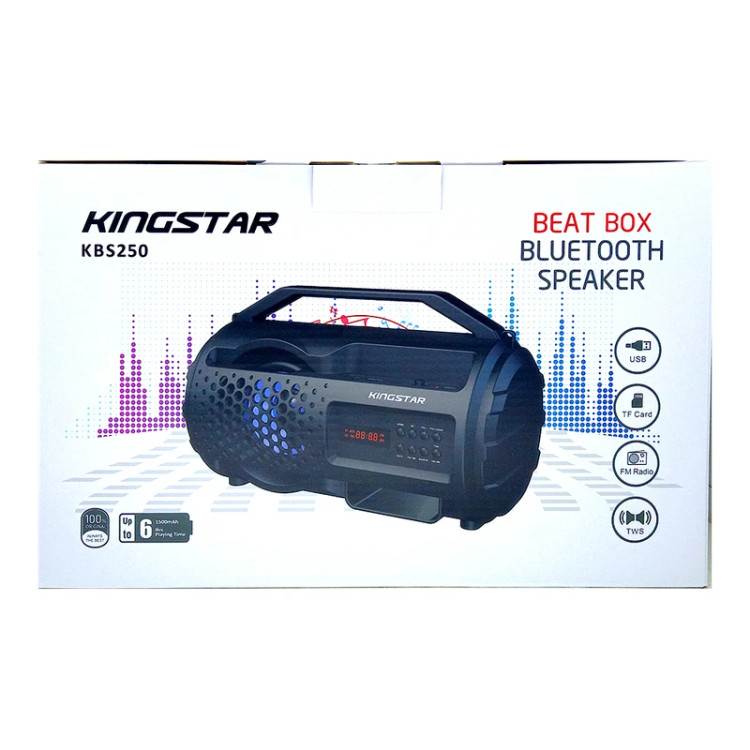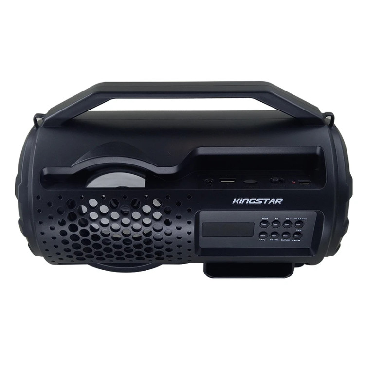همیشه جای یک موسیقی در مهمانی و دورهمیهای دوستانه خالی است. اسپیکر بلوتوثی کینگ استار میتواند این جای خالی موسیقی را برای شما پر کند. این دستگاه وزنی برابر با 1 کیلوگرم داشته و به وسیله بند و دسته، قابل حمل است. در قسمت جلویی دستگاه پنل LED وجود دارد و در کنار آن دکمههایی برای کنترل موسیقی و مدیریت دستگاه تعبیه شده. اسپیکر کینگ استار قابلیت اتصال به هر وسیلهای مانند تبلت و انواع تلفنهای همراه را به وسیله بلوتوث نسخه 5 به بالا داشته و در بازه 10 متری کیفیت صدا با وضوح بالایی ارائه میدهد. این دستگاه میتواند از طریق جک 3.5 میلیمتری و شیار کارت حافظه نیز به دستگاههای دیگر متصل شده و به پخش موسیقی مورد علاقه شما بپردازد. از دیگر ویژگیهای این اسپیکر همراه، میتوان به داشتن ظرفیت باتری 1500 میلیآمپرساعت آن اشاره کرد؛ این ظرفیت معادل با 6 ساعت کار مدارم اسپیکر با ولوم صدای 50 درصد است.