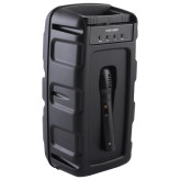 مشاهده محصولات مرتبطاسپیکر کیمیسو مدل KMS-6686 برای تولید صدای شفاف در محیط هایی که به صداهای مختلف نیاز است طراحی شده و به زبان ساده هر نوع صدایی که میتوان به صورت با کیفیت در محیط شنید را برای شما تولید میکند. اسپیکر بیسیم KMS-6686 از سری اسپیکرهای تولید شده توسط کمپانی کیمیسو است که به عنوان اسپیکر بی سیم روانه بازار شده است. این اسپیکر دارای قابلیت اتصال میکروفون است که با استفاده از این قابلیت میتوانید در میکروفون خود بخوانید و صدای خود را از این اسپیکر بشنوید. این اسپیکر بیسیم دارای باتری لیتیوم یونی قابل شارژ است. با استفاده از این باتریهای قابل شارژ میتوانید این اسپیکر را در هر زمان به هر مکان که مایل هستید به همراه خود ببرید و به موسیقیهای مورد علاقه خود گوش دهید. همچنین با هربار شارژ این اسپیکر نیز میتوانید تا ساعتها از پخش موسیقی لذت ببرید. اسپیکر KMS-6686 دارای ورودی میکروفون است. با استفاده از این ورودی میکروفون میتوانید میکروفون خود را به این دستگاه متصل کنید و با استفاده از قابلیت کارائوکه به صورت یک اجرای زنده صدای خود را از اسپیکر بشنوید. همچنین میتوانید یک موسیقی بیکلام پخش کنید و روی آن بخوانید. اتصال به این اسپیکر به دو صورت باسیم و بیسیم امکانپذیر میباشد. اتصال بیسیم از طریق بلوتوث و اتصال باسیم از طریق AUX، USB، Line و Micro SD Card صورت میگیرد. بنابراین با هرکدام از روشهای اتصال، میتوانید به این اسپیکر متصل شوید و موسیقیهای مورد علاقه خود را پخش کنید. بر روی قسمت بالایی این اسپیکر، تعدادی دکمه و کنترلکنندههای چرخشی قرار گرفته است. با استفاده از این پنل کنترلکننده، میتوانید به کنترل مقدار صدا و همچنین میتوانید با استفاده از دکمههای تعبیه شده بر روی این پنل، پخش موسیقیهای خود را نیز در کنترل خود قرار دهید. در قسمت بالایی پنل کنترلکنندهی این اسپیکر، یک صفحه نمایش دیجیتال قرار گرفته است.