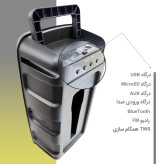 مشاهده محصولات مرتبطاسپیکر کیمیسو مدل KMS-6188 برای تولید صدای شفاف در محیط هایی که به صداهای مختلف نیاز است طراحی شده و به زبان ساده هر نوع صدایی که میتوان به صورت با کیفیت در محیط شنید را برای شما تولید میکند. اسپیکر بیسیم KMS-6188 از سری اسپیکرهای تولید شده توسط کمپانی کیمیسو است که به عنوان اسپیکر بی سیم روانه بازار شده است. این اسپیکر دارای قابلیت اتصال میکروفون است که با استفاده از این قابلیت میتوانید در میکروفون خود بخوانید و صدای خود را از این اسپیکر بشنوید. این اسپیکر بیسیم دارای باتری لیتیوم یونی قابل شارژ است. با استفاده از این باتریهای قابل شارژ میتوانید این اسپیکر را در هر زمان به هر مکان که مایل هستید به همراه خود ببرید و به موسیقیهای مورد علاقه خود گوش دهید. همچنین با هربار شارژ این اسپیکر نیز میتوانید تا ساعتها از پخش موسیقی لذت ببرید. اسپیکر KMS-6188 دارای ورودی میکروفون است. با استفاده از این ورودی میکروفون میتوانید میکروفون خود را به این دستگاه متصل کنید و با استفاده از قابلیت کارائوکه به صورت یک اجرای زنده صدای خود را از اسپیکر بشنوید. همچنین میتوانید یک موسیقی بیکلام پخش کنید و روی آن بخوانید. اتصال به این اسپیکر به دو صورت باسیم و بیسیم امکانپذیر میباشد. اتصال بیسیم از طریق بلوتوث و اتصال باسیم از طریق AUX، USB، Line و Micro SD Card صورت میگیرد. بنابراین با هرکدام از روشهای اتصال، میتوانید به این اسپیکر متصل شوید و موسیقیهای مورد علاقه خود را پخش کنید. بر روی قسمت بالایی این اسپیکر، تعدادی دکمه و کنترلکنندههای چرخشی قرار گرفته است. با استفاده از این پنل کنترلکننده، میتوانید به کنترل مقدار صدا و همچنین میتوانید با استفاده از دکمههای تعبیه شده بر روی این پنل، پخش موسیقیهای خود را نیز در کنترل خود قرار دهید. در قسمت بالایی پنل کنترلکنندهی این اسپیکر، یک صفحه نمایش دیجیتال قرار گرفته است.