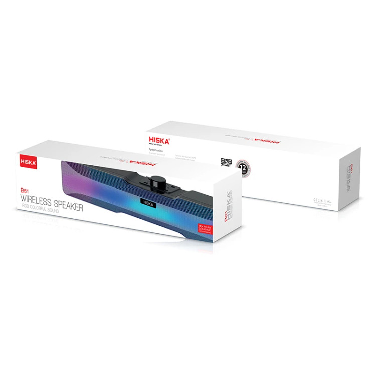 اگر علاقه مند به موسیقی هستید و در موقعیت های مختلف اعم از سفر، مهمانی و دورهمی های دوستانه به موسیقی گوش می دهید، داشتن اسپیکری که سبک و قابل حمل و در عین حال باکیفیت باشد برای شما مزیت به حساب می آید. اسپیکرهای پرتابل به دلیل اتصال و حمل و نقل راحت در هر موقعیت مکانی ای برای دوست داران و علاقه مندان به موسیقی، کاربرد دارند. اسپیکر هیسکا مدل B61 در ابعاد 380x60x65 میلی متر با وزن 500 گرم در رنگ مشکی ارائه شده است. این دستگاه امکان اتصال از طریق بلوتوث با آخرین نسخه ی حال حاضر ورژن5.1 را برای شما فراهم کرده که دارای قابلیت پشتیبانی تا مسافت 10 متری است. همچنین حالت نورپردازی RGB باعث زیبایی دوچندان این دستگاه شده است. از دیگر امکانات اسپیکر هیسکا مدل B61 میتوان به مجهز بودن آن به درگاه های پورت USB-C_ SD CARD_AUX قابلیت پاسخگویی به تماس های ورودی خود (CALL FUNCTION) اشاره کرد. اسپیکر هیسکا مدل B61 دارای یک باتری لیتیومی 1200 میلی آمپری است که در مدت زمان 2 ساعت بطور کامل شارژ میشود. وتا 4 ساعت مدت زمان پخش آن می باشد.