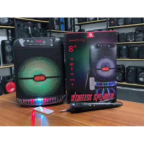 کی تی اس 1522 را میتوان یکی از کاربردی ترین و در عین حال قوی ترین اسپیکر های قابل حمل در اندازه ی متوسط قلمداد کرد. این اسپیکر با قدرت 8 اینچی خود و رقص نور دو گانه جذابیت خاصی را در حین پخش موسیقی در فضاهای کوچک و بزرگ به ارمغان می آورد. با اتصال میکروفون همراه در جعبه ی این محصول میتوانید لحظات به یاد ماندنی را برای خود و اطرافیانتان خلق کنید.