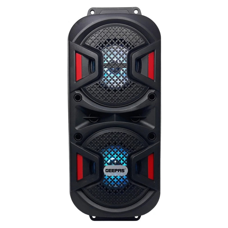 مشاهده محصولات مرتبطشرکت جی پاس با بیش از 38 سال سابقه در زمینه عرضه لوازم خانگی و صوتی و تصویری و ... در قاره های های آسیا ، اروپا و آمریکا با ارائه بیش از 1500 دستگاه ، فعالیت گسترده دارد. مجموعه کامل اسپیکر دارای اکو و میکروفون بی سیم با امکان پخش صدای زنده با اکو و همچنین پخش موسیقی و فایل های صوتی با مدل GMS11187 یکی از این محصولات است .دستگاه صدای باس ( یا بیس ) مناسبی دارد . دستگاه را می توان با میکروفون با سیم با کیفیت صدای بسیار عالی که به همراه دستگاه ارائه می شود ،جهت اجرای زنده برنامه های صوتی و مراسم، استفاده کرد. دستگاه امکان پخش صدای استریو را دارد و علاوه بر آنکه از طریق کارت حافظه و فلش مموری فایل های استریو را پخش می کند - دو بلند گو در دستگاه نصب شده اند - با سیستم TWS که اتصال بی سیم بلوتوثی استریو یا True Wireless Stereo می باشد ، از طریق بلوتوث صدای استریوی موبایل و یا هر پخش کننده بلوتوثی را می تواند پخش کند . داخل حفره قرار گیری بلندگوی دستگاه ، رقص نور تعبیه شده است .تغذیه دستگاه را یک باتری 3.7 ولت 1500 میلی آمپر ساعت لیتیوم یون بر عهده دارد که با شارژ 5 ولت موبایل شارز آن انجام می شود.دستگاه قابلیت اتصال میکروفون باسیم را هم دارد .