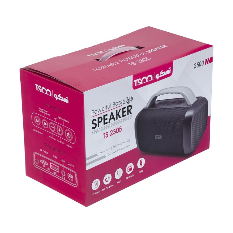 اسپیکر بلوتوثی قابل حمل تسکو مدل TS 2305 یک همراه همیشگی و قابل اعتماد برای لذت بردن از موسیقی در هر زمان و مکان است. این اسپیکر با طراحی کوچک و جمعوجور خود امکان حمل و جابهجایی آسان را برای شما فراهم میکند تا بتوانید از صدای باکیفیت آن در هر شرایطی بهرهمند شوید. یکی از مهمترین ویژگیهای این اسپیکر، کیفیت صدای عالی و توان خروجی مناسب آن است. با بهرهگیری از دو عدد بلندگوی قدرتمند 15 وات، این اسپیکر صدایی شفاف، پرقدرت و پربازه ارائه میدهد که باعث میشود انواع صداها را دقیقا به همان شکلی که هستند بشنوید. این اسپیکر بازه صوتی 150 تا 20 هزار هرتز را به صورت کامل پوشش میدهد و به همین خاطر میتوانید کلیه جزئیات آهنگ را با دقت کامل بشنوید. علاوه بر کیفیت صدا، این اسپیکر تسکو از قابلیتهای متنوعی نیز برخوردار است. قابلیت اتصال بلوتوثی با دامنهی 10 متری، امکان پخش موسیقی بیسیم را از گوشیهوشمند، تبلت و سایر دستگاههای شما فراهم میآورد. همچنین، وجود درگاههای کارت حافظه، فلشمموری و USB امکان پخش موسیقی از روی این رسانهها را نیز برای شما مهیا میکند. یکی دیگر از ویژگیهای برجسته این محصول، باتری با دوام بالای آن است. باتری داخلی 7200 میلیآمپر ساعتی این اسپیکر، امکان پخش موسیقی تا 8 ساعت را برای شما فراهم میآورد. بنابراین، میتوانید این اسپیکر را همراه خود در سفرها، پیکنیکها و سایر مناسبتها داشته باشید و از لذت موسیقی بیوقفه بهرهمند شوید. بهطورکلی، اسپیکر بلوتوثی قابل حمل تسکو مدل TS 2305 با ترکیب ویژگیهای متنوع و کاربردی خود، گزینهای ایدهآل برای همراهی همیشگی شما در هر شرایطی است. پس اگر به دنبال یک اسپیکر صوتی باکیفیت هستید که بتوانید به راحتی همراه خود داشته باشید، این محصول تسکو پاسخ مناسبی برای شما خواهد بود.
