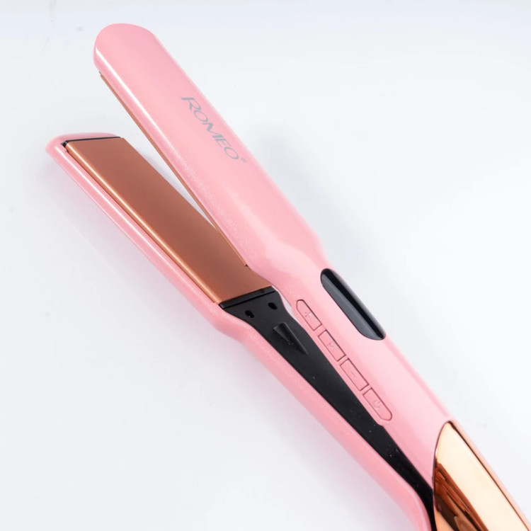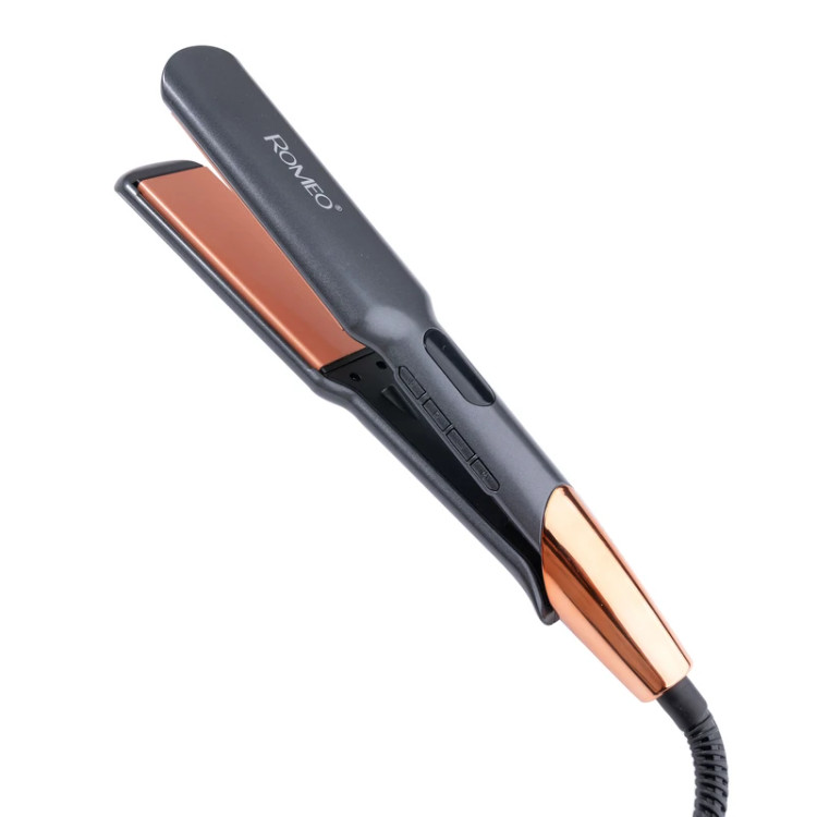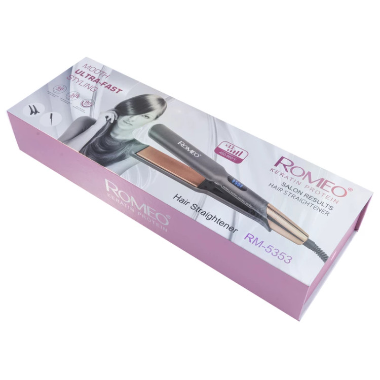 اتو مو رومئو مدل RM-5353 یک ابزار حالت دهنده بسیار کاربردی و پرقدرت با توان مصرفی 55 وات است. این محصول دارای قابلیت تنظیم دما در 11 دمای مختلف در بازه 450 تا 950 درجه فارنهایت است که به شما امکان می دهد بر اساس نوع و حالت موهای خود، دمای مناسب را انتخاب کنید. این اتو مو دارای سیستم خاموشی خودکار بعد از 60 دقیقه است که از اتلاف انرژی جلوگیری می کند و همچنین برای ایمنی بیشتر، زمان داغ شدن آن 30 ثانیه و زمان رسیدن به حداکثر دما 90 ثانیه است. صفحه نمایش LCD بر روی دستگاه، دمای فعلی اتو مو را نمایش می دهد. بدنه این محصول با پوشش مقاوم در برابر حرارت طراحی شده است تا از سوختگی دست در هنگام استفاده جلوگیری کند. همچنین، سیم گردان آن امکان استفاده راحت تر را فراهم می کند. دکمه های روشن و خاموش و کم و زیاد کردن دما، کنترل دستگاه را برای شما آسان می کند. با دکمه قفل کردن صفحه اتومو، می توانید صفحه اتومو را در حالت ثابت قفل کنید. این محصول همچنین دارای قابلیت گرمایش با دمای ثابت است که باعث می شود موهای شما به طور یکنواخت گرم شوند و از آسیب رسیدن به موها جلوگیری می کند. اقلام همراه این محصول شامل دو عدد گیره مو و یک عدد شانه است که به شما کمک می کند تا موهای خود را صاف و خوش حالت کنید.