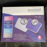 ترازوی «اکیومد» (Accumed) مدل «YM414» حداکثر وزنی که این ترازو قادر به اندازهگیری آن بوده، 130 کیلوگرم است. دقت اندازهگیری وزن 100 گرم است و این یعنی تغییرات وزن کمتر از 100گرم را تشخیص نمیدهد. نمایش اعداد بسیار خوانا و بزرگ است.