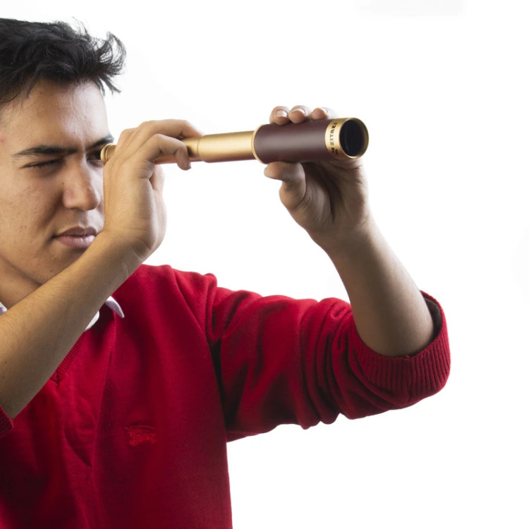 دوربین تک چشمی تلسکوپی به دلیل بزرگنمایی بالا، وزن کم و اندازه کوچک یک انتخاب عالی برای علاقمندان طبیعت و حیات وحش است. مناسب برای تماشای پرندگان، تماشای مناظر طبیعت و شهری، حیات وحش، روزهای برفی و اسکی و حتی مناسب کودکان. ترکیب میدان دید 82 متری و بزرگنمایی 25 برابری باعث میشود هم جزئیات خوبی از سوژههای مورد نظر را ببینید و هم وسعت دید شما مناسب باشد. تک چشمی طلایی رنگ با بزرگنمایی 25 برابر، خریدی مناسب و هدیهای عالی برای افراد کنجکاو و علاقمند طبیعت است که مناسب تماشای مناظر شهری نیز است. مقدار بزرگنمایی این دوربین کوچک برابر با بزرگترین دوچشمیهای موجود در بازار است و به دلیل امکان جمع شدن آن به راحتی در جیب، یا کیف دستی یا کیف کمری جا میشود. برخلاف ظاهر دکوری و شباهت آن به تکچشمی در فیلمهای سینمایی و دزدان دریایی دوربینی قدرتمند است که حتی میتوانید با آن ماه را رصد کنید یا درصورت تسلط کافی قمرههای مشتری را ببینید. این مدل دارای یک کیف چرمی است که میتوانید در ان دوربین تکچشمی را قراردهید تا خط و خش و گرد و خاک روی ان نشیند این کیف دارای بستی هست که میتوانید انرا به کمر بندتان وصل کنید تا در همه جا همراه شما باشد! جنس منشور دوربین تک چشمی تلسکوپی شیشه Bak4 است که در دوربینهایی با کیفیت ساخت بالا از این ماده برای منشورها استفاده میشود. منشور Bak4 ضریب شکست بیشتری نسبت به BK-7 دارد. روش ساخت آن به شکلی است که حبابهای بسیار کمتری حین فرایند تولید در منشور شکل میگیرد و به همین دلایل هم دوربینهایی که از این شیشه در آنها استفاده شده است تصویر شفافتری دارد.