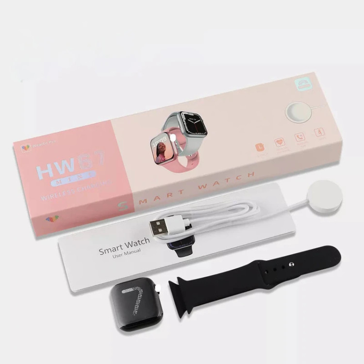 ساعت هوشمند HW67 mini با منوی روان و کیفیت صفحه بسیار بالا احساس خوشایندی را به فرد میدهد. این ساعت دارای فناوری شارژ وایرلس است. ظرافت ساخت و امکانات این کالا توانسته یک ساعت تمام و کمال را در اختیار کاربرانی که به ساعتهای هوشمند با سایز کوچکتر 41 میلیمتری داند، قرار دهد. شما میتوانید با استفاده از واچ فیس دلخواه از گالری خود و یا واچ فیسهای زیبا خود این ساعت لذت در دست داشتن یک واچ شیک را ببرید.