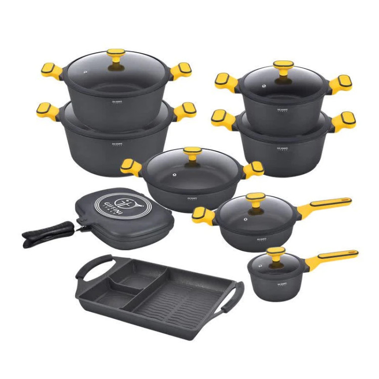 سرویس پخت وپز (قابلمه) گرانیت، محصولی است جدید از کمپانی جی فی نی ،با جدیدترین خطوط تولیدی مجهز به تکنولوژی روز (نانو) با قابلیت ذخیره انرژی تا 30% عرضه شده است. جنس بدنه کلیه سرویس ها از 5 لایه گرانیت ساخته شده و تکنولوژی بکاررفته در قسمت تحتانی این محصولات را از شعله پخش کن بی نیاز میکند. محصولات جی فی نی در بروزترین خطوط تولیدی در کوره های خاص رنگ شده وتا 350 درجه در برابر حرارت مستقیم مقاومت میکنند.