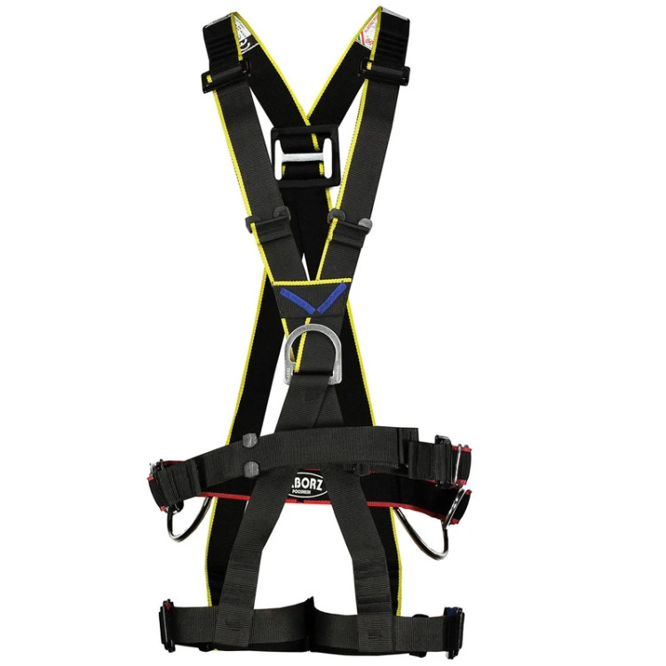 مشاهده محصولات مرتبطهارنسهایی که به صورت کامل بدن را در بر میگیرند از امنیت بیشتری برخوردارند. این هارنسها نیروی وزن فرد را به شکل مناسبی بر روی دوش، کمر و پای او تقسیم میکنند و مانع از آسیب دیدن او در هنگام سقوط میشوند. محصول فوق نیز یکی از هارنسهای تمام بدن (Full Body) است که توسط شرکت «البرز پوشش» (Alborz Pooshesh) تولید میشود. این هارنس (A230) نام دارد و قابلیتهای زیادی دارد. این محصول دارای قابلیت تنظیم بوده و میتوانید آن را با توجه به سایز خود تنظیم کنید. تسمههای به کار رفته در ساخت این هارنس استحکام بالایی دارند و به خوبی میتوانند وزنی برابر 400 کیلوگرم را تحمل کنند. روی این هارنس چهار حلقهی فولادی قرار دارد که جهت اتصال طراحی شدهاند. هارنس فوق برای افرادی که در ارتفاعات زیاد و برای مدتی طولانی کار میکنند مناسب است و کاربرمیتواند با نصب یک صندلی نشیمن روی آن،در مواقعی استراحت کند. این محصول دارای قابلیت نصب ترمز بوده و برای افزایش امنیت میتوانید از یک ضربهگیر در مسیر لنیارد متصل به آن استفاده کنید.