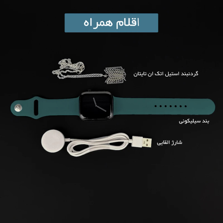 ساعت هوشمند گیفت کالکشن مدل Attack On Titan با جعبه منحصر به فرد یکی از بهترین ساعت های هوشمند تولید شده در رده ساعت های با قابلیت مکالمه و با کارایی بالاست.این ساعت از بهترین متریال ساخت بدنه،صفحه نمایش IPS و بالاترین درجه کیفی ساخته شده است.قابلیت های ویژه این ساعت هوشمند پاسخ دهی و شماره گیری تماس از داخل ساعت ،نمایش اعلانات فارسی و انگلیسی-صفحه نمایش بدون حاشیه و تمام صفحه،قابلیت تعویض بند و قابلیت NFC که امروزه درچین و کشورهای پیشرفته برای مصارف گوناگون در حال گسترش است و ماشین حساب،کرنومتر،قابلیت آلارم،هشدار کم تحرکی،یادآوری نوشیدن آب-دارو، منوی فارسی،قابلیت های ورزشی مانند مسیر پیموده شده و کالری سوزانده شده و...از جمله ویژگی های مهم این ساعت است.این ساعت با قابلیت شارژر بیسیم عرضه شده که آخرین تکنولوژی مورد استفاده در دنیاست. به همراه ساعت یک عدد بند سیلیکونی - یک عدد گردنبند اتک ان تایتان - شارژر ساعت هوشمند و راهنمای نصب نرم افزار به صورت فارسی برای راحتی بیشتر مشتریان عزیز ارائه گردیده است.