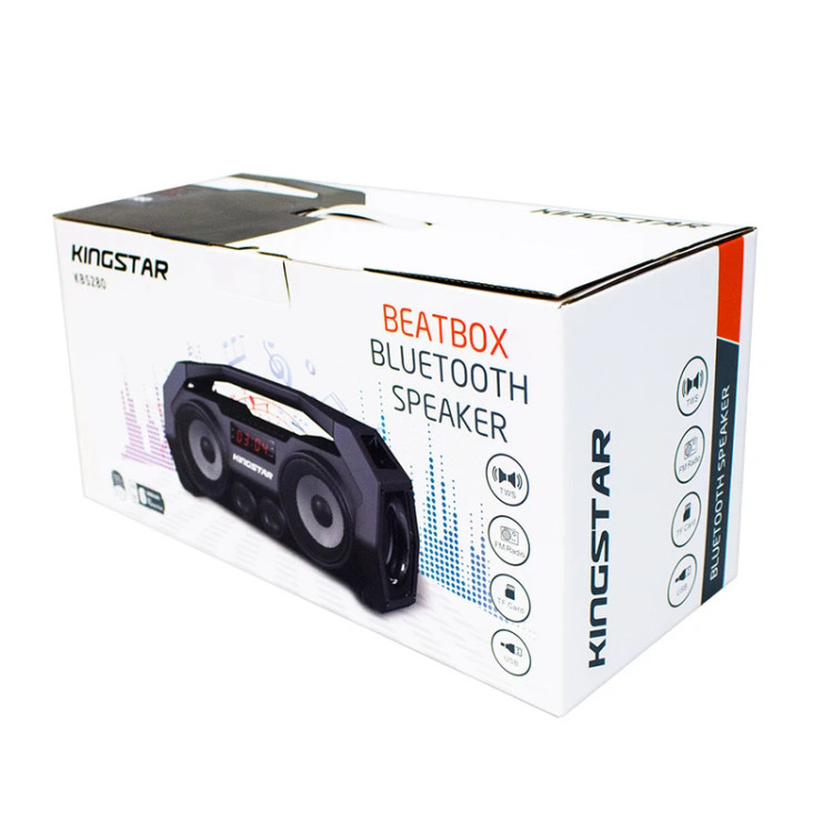 اسپیکر KBS280 کینگ استار توسط شرکت « کینگ استار» (kingstar) تولید و در بازار ایران عرضه شده است. این محصول یک محصول حرفه ای از سری اسپیکر های کینگ استار می باشد. با این که اندازه چندان بزرگی ندارد ولی دارای دو اسپیکر با توان خروجی7.5 وات است. این محصول استایلی بسیار مدرن و شیک دارد اگر طرفدار پارکور هستید و در محیط خانه و یا بیرون از خانه تمرین می کنید ، می توانید موسیقی انگیزشی خود را با آن پخش کنید. ابعاد این محصول 40x15.7x19.5 سانتی متر است و دو بلندگوی 4 اینچی را داراست. ظرفیت باتری آن 1800 میلی آمپر بوده و 6 ساعت با هر بار شارژ آن می توانید به موسیقی دلخواهتان گوش دهید برروی صفحه LED آن ساعت دیجیتالی و مود اسپیکر مشخص گردیده است. این محصول از فلش مموری و کارت میکرو و AUX پشتیبانی میکند. پس شما علاوه بر اتصال از طریق بلوتوث می توانید با یک کابل AUX و یا فلش مموری و حتی کارت میکرو لیست موزیک های مورد علاقه خود را با این اسپیکر پخش کنید.