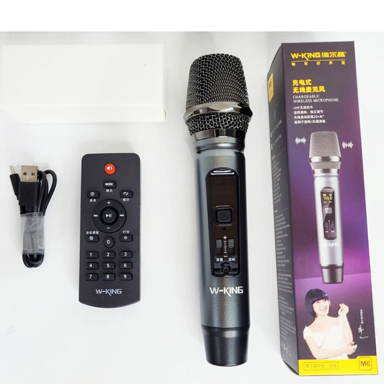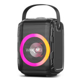 اسپیکر W-King T9S ، یک اسپیکر 25 واتی با قابلیت اتصال به یک T9S دیگر TWS، باتری 4000 میلی آمپر ساعتی و امکانات دیگر مثل میکروفون وایرلس، انتخاب خوبی برای کسانی است که به دنبال اسپیکر با کیفیت هستند تا بتوانند همه جا از آن استفاده کنند. از نظر ظاهری، اسپیکر W-King T9S به گونه ای طراحی شده است تا بتوانید در محیط های مختلف از آن استفاده کنید. می توانید آن را به صورت ایستاده یا افقی قرار دهید. برای جابه جایی آن یک دستگیره محرک از جنس چرم مصنوعی تعبیه شده تا در کنار زیبایی در حمل و نقل آن مشکلی نداشته باشید. ابعاد اسپیکر برابر 286x193x166 میلیمتر است. روی اسپیکر بلوتوث دبلیو کینگ T9S یک حلقه نورپزدازی RGB قرار دارد که می تواند با ریتم موسیقی هماهنگ شود. این نورپردازی در 6 حالت مختلف تنظیم شود. از ویژگی های صوتی این اسپیکر میتوان به توان 25 وات RMS آن اشاره کرد. اسپیکر بلوتوث دبلیو کینگ T9S دارای یک بلندگوی 5.25 اینچی است. این بلندگو از نوع Full Range می باشد تا خروجی آن صدای با کیفیت باشد. یکی از ویژگی های اسپیکر WK پشتیبانی از قابلیت TWS است که می توانید دو عدد از این اسپیکر را توسط بلوتوث به هم متصل کنید. در این صورت صدا به صورت استریو با توان بالاتری پخش می شود. اسپیکر W-King T9S دارای باتری با ظرفیت 4000 میلی آمپر ساعت است تا در محیط داخل و فضای باز شارژدهی بالایی داشته باشد. بسته به استفاده شما و میزان حجم صدا بین 6 تا 10 ساعت می تواند شارژدهی داشته باشد. پورت Type C قرار گرفته در پشت بدنه اسپیکر، مختص به شارژ کردن است که ظرف 2.5 ساعت به شارژ کامل می رسد. علاوه بر آن شما می توانید از این اسپیکر به عنوان پاوربانک نیز استفاده کنید. اسپیکر W-King T9S دارای پنل کنترل کاملی است تا به راحتی بتوانید موسیقی و عملکرد دستگاه را کنترل کنید. روی آن کلید هایی برای رفتن به آهنگ قبل/بعد، توقف/پخش موسیقی، روشن و خاموش کردن اسپیکر، تنظیمات مربوط به میکروفون و تغییر حالت نورپردازی RGB قرار دارد. در مرکز این کلیدها، کلید چرخان با پس زمینه نورانی برای کم/زیاد کردن صدا طراحی شده است که جلوه زیبایی به اسپیکر داده است. در داخل پک اسپیکر بلوتوث دبلیو کینگ T9S یک ریموت کنترل نیز قرار دارد تا از راه دور نیز فرامین را شما را اجرا کند.