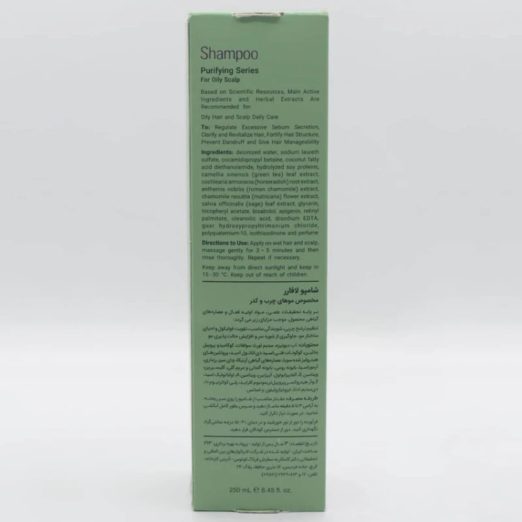 شامپو کنترل کننده چربی لافارر حاوی پروتئین های هیدرولیز شده سویا، عصاره گیاهان مریم گلی، چای سبز، بابونه آلمانی، بابونه رومی و آرموراسیا میباشد که موجب تنظیم ترشح غدد چربی، تقویت فولیکول مو، جلوگیری از شوره سر و رفع التهاب و خارش پوست سر میگردد،عصاره های گیاهی به کار رفته در شامپو باعث تغذیه مو، حفاظت تارهای مو از عوامل محیطی و شیمیایی مخرب و همچنین ایجاد حس لطافت و افزایش خاصیت الاستیسیته مو میشوند
