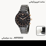 مشاهده محصولات مرتبطبرند امپریو آرمانی برندی ست که توسط کمپانی فسیل گروپ (سومین کمپانی ساعت سازی مطرح دنیا) ساخته می شود. موتور این ساعت توسط کمپانی میوتای ژاپن (بزرگترین کمپانی موتورساعت سازی دنیا) ساخته شده و از نوع کوارتز (باتری دار) است. این ساعت در ابعاد قطر قاب 43 میلیمتر ضخامت قاب 13 میلیمتر عرض بند 22 میلیمتر طراحی شده است. جنس بند و جنس بدنه این ساعت از سرامیک با کیفیت می باشد.از ویژگی های تخصصی این ساعت میتوان به تقویم ، کرنوگراف و نمایش 24 ساعته اشاره کرد. مقاومت این ساعت در برابر آب 5 اتمسفر می باشد