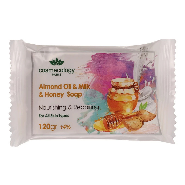 صابون شستشو کاسمکولوژی مدل روغن بادام و شیر و عسل وزن 120 گرم